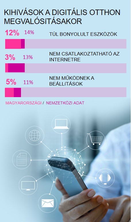 A felmérésből kiderült azonban, hogy Magyarországon is sok olyan csatlakoztatott készülék van, melynek biztonságos használata során a fogyasztók problémákkal szembesülnek. A kutatás szerint az internetre csatlakoztatott technológiába fektető fogyasztók több mint fele, 42 százalékuk kihívásokkal szembesül. A gondok általában a következők: túl bonyolult az eszközök használata (12 százalék), nem csatlakoztatható az internetre (3 százalék), nem működik a beállítás (5 százalék), valamint hiányolják a személyre szabás lehetőségét, biztonsági aggályaik vannak, vagy nem elégedettek az ügyféltámogatással.