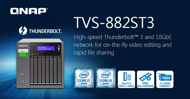 -khez, a TVS-882ST3 tökéletes a kis irodák és munkacsoportok számára, akik olyan teljesítményt és funkcionalitást keresnek, amely általában csúcskategóriás szerverekben érhető el.”A 64 bites QTS 4.3 operációs rendszer futtatásával a TVS-882ST3 támogatja az innovatív Thunderbolt-to-Ethernet (T2E) átalakítót, amely lehetővé teszi a Thunderbolt-kompatibilis eszközök számára a 10GbE hálózati erőforrásokhoz való hozzáférést egy NAS Thunderbolt kapcsolaton keresztül. Ez az innovatív átalakító rugalmas és költséghatékony adatátviteli módszert biztosít az