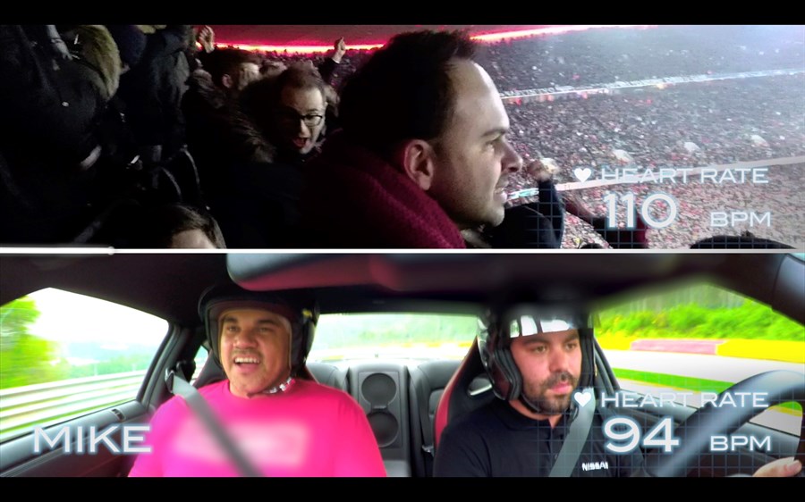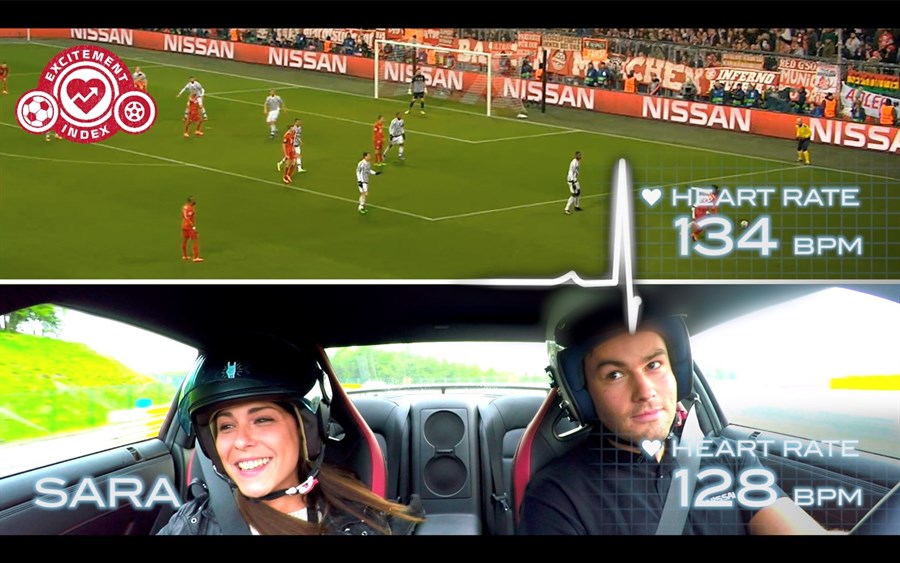 A két kísérlet során mind a futball mérkőzéseken, mind pedig a Nissan GT-R-ban ülve a résztvevők pulzusszáma egészen hasonló volt, természetesen kiugrásokkal a legizgalmasabb pillanatokban – például egy rúgott gólnál vagy egy szűk kanyarban, ahogyan azt vártuk is.