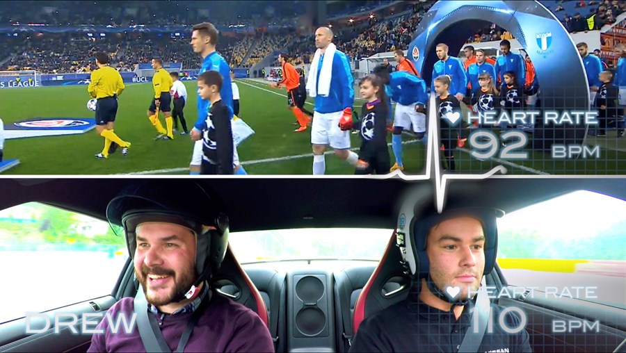 Az önkéntesek a legmodernebb érzékelőket viselve először végignézték az UEFA Bajnokok Ligája mérkőzéseit, majd az ikonikus belgiumi Spa-Francorchamps pályán vizsgálták fizikai válaszaikat egy Nissan GT-R-ban 250km/órával száguldva