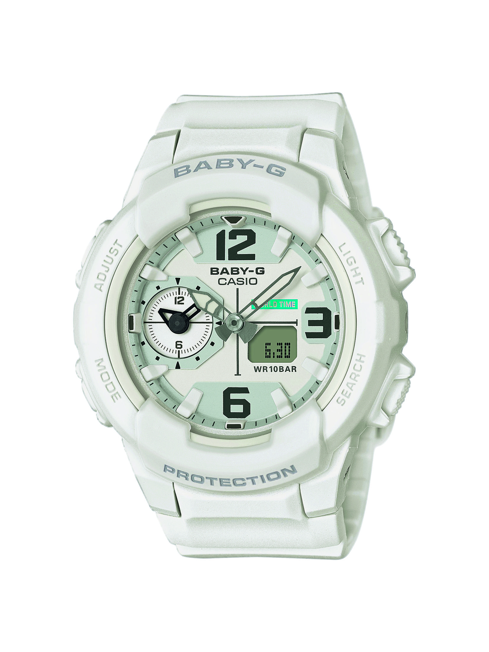 A Casio Baby-G BGA-230 termékvonala a trendi, sportos, de egyben elegáns stílusú fiatalokat szólítja meg. Az ebbe a típuscsaládba tartozó pasztel színű órák egyaránt rendelkeznek világóra, ébresztő, illetve stopper funkcióval. A BGA-230 kiemelkedő ütésállósággal büszkélkedhet, a számlap megvilágításáról pedig takarékos LED-háttér világítás gondoskodik. Ezek az órák még a víztől sem tartják távol viselőjüket, ugyanis 100 méterig vízállóak, így fürdőzés közben sem kell tőlük megválni. Ezen kollekcióba tartozó órák elemei legalább 2 éves elem élettartammal rendelkeznek. A BGA-230-as család ez év tavaszától már rendelhető.