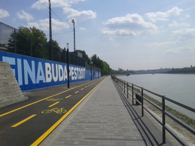 A sétány mentén elhelyezkedő támfalakat a világbajnokság arculati elemeivel festették meg, a partszakasz büszkén hirdeti Budapest és Magyarország történetének eddigi legnagyobb sporteseményét.