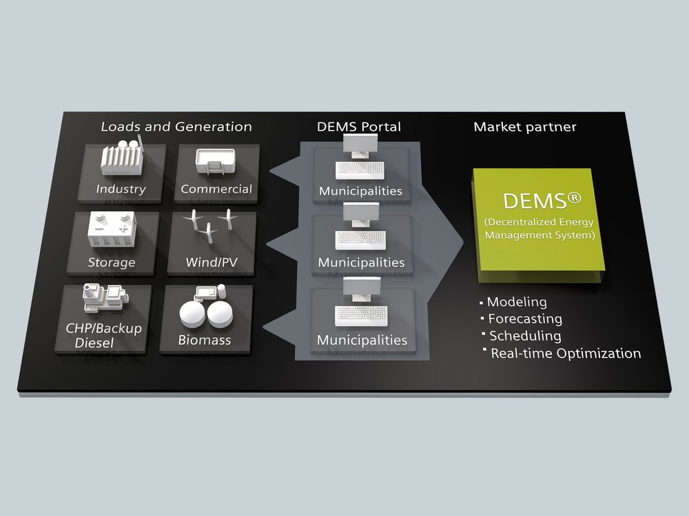 A Rotterdam Merwe-Vierhavens körzetében induló projekt célja az energia előállításának és felhasználásának intelligens vezérlése annak érdekében, hogy "kisimítsák" a fogyasztási csúcsokat, elkerüljék a hálózati túlterheléseket, valamint csökkentsék az energia és áramelosztási költségeket. Az intelligens hálózati projekt egy másik célkitűzése az, hogy ösztönözze a beruházásokat további megújuló energiaforrásokba és energiatároló rendszerekbe, és lehetővé tegye új üzleti modellek kialakítását. A DEMS decentralizált energiagazdálkodási rendszert használják a rotterdami intelligens elektromos hálózat platformjaként, hogy kiegyensúlyozzák az energiaelőállítás és -terhelés ingadozásait, illetve kompenzálják a hálózatban előforduló energiacsúcsokat.