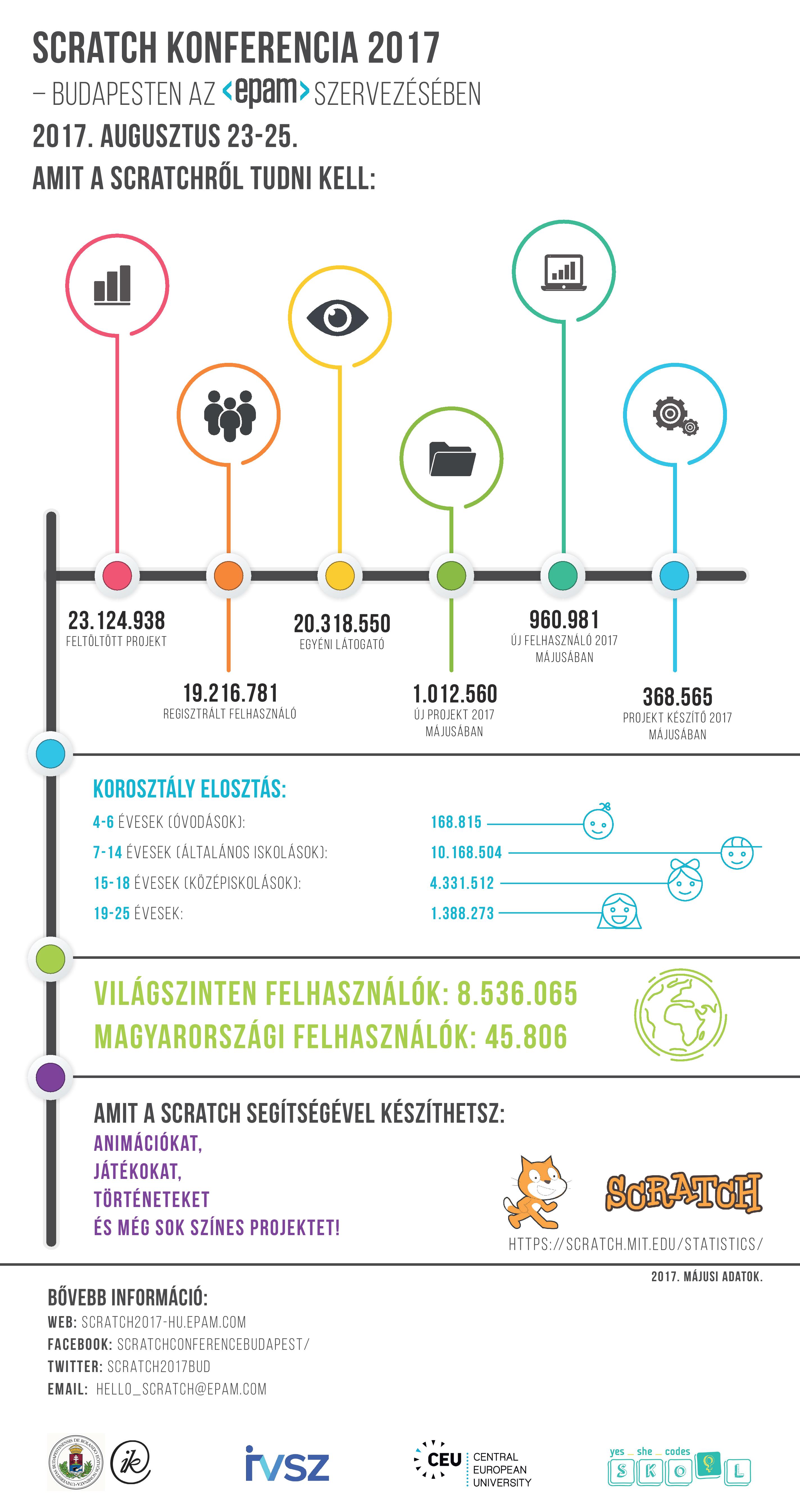 Az idén először Budapestre érkező Scratch Konferenciát az EPAM szervezi, olyan hazai partnerekkel, akik mind a hazai digitális oktatás fejlesztésén dolgoznak: az ELTE Informatikai Kara, az IVSZ, a Skool, illetve a konferenciának otthont adó Közép-európai Egyetem (CEU). Az esemény olyan inspiráló platformot biztosít a résztvevőknek, ahol megismerhetik a Scratch-et használó innovatív oktatási módszereket. „Büszkék vagyunk arra, hogy mi szervezhetjük az első budapesti Scratch konferenciát. Az eseményt ingyenessé tettük, ezzel is minél több tanárnak, oktatónak szeretnénk lehetőséget biztosítani a részvételre, azzal a nem titkolt szándékkal, hogy az itt látottakat bele tudják építeni az oktatási eszköztárba” – mondta el Bozsó Attila, az EPAM régiós igazgatója.