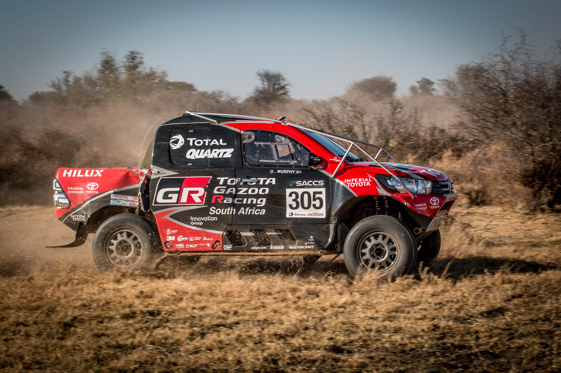 Poulter és Howie számára szokás szerint eredményesen kezdődött a verseny. A páros bizonyult a leggyorsabbnak a pénteki időmérőn – még ha csupán 25 másodperccel is, ami elég karcsúnak számít. Ez bármelyik másik terepversenyen elégnek bizonyulhat, ám a Kalahári könyörtelen hely, és a második versenynapon elszenvedett defekt miatt a De Villiers/Murphy páros mögé kényszerültek.A két nehézsúlyú közt ezután komoly adok-kapok alakult ki; a második versenynapon a Poulter/Howie páros mindvégig De Villiersék sarkában lihegett, és a két FIA-osztályú Hilux fényesen bizonyította kimagasló teljesítményét és strapabírását, miközben a Kalahári sivatagban száguldottak. Poulter jól tudta, hogy azonnal oda kell lépnie, ha De Villiers kisodródik valahol, de nem volt képes eléggé befogni őt ahhoz, hogy átvegye a vezetést. A tapasztalt és kitartó De Villiers keményen küzdött, és az őt szorongató Poulter előtt hat másodperccel ért célba – ami elképesztően szoros küzdelmet jelent egy 100 kilométeres futamon.