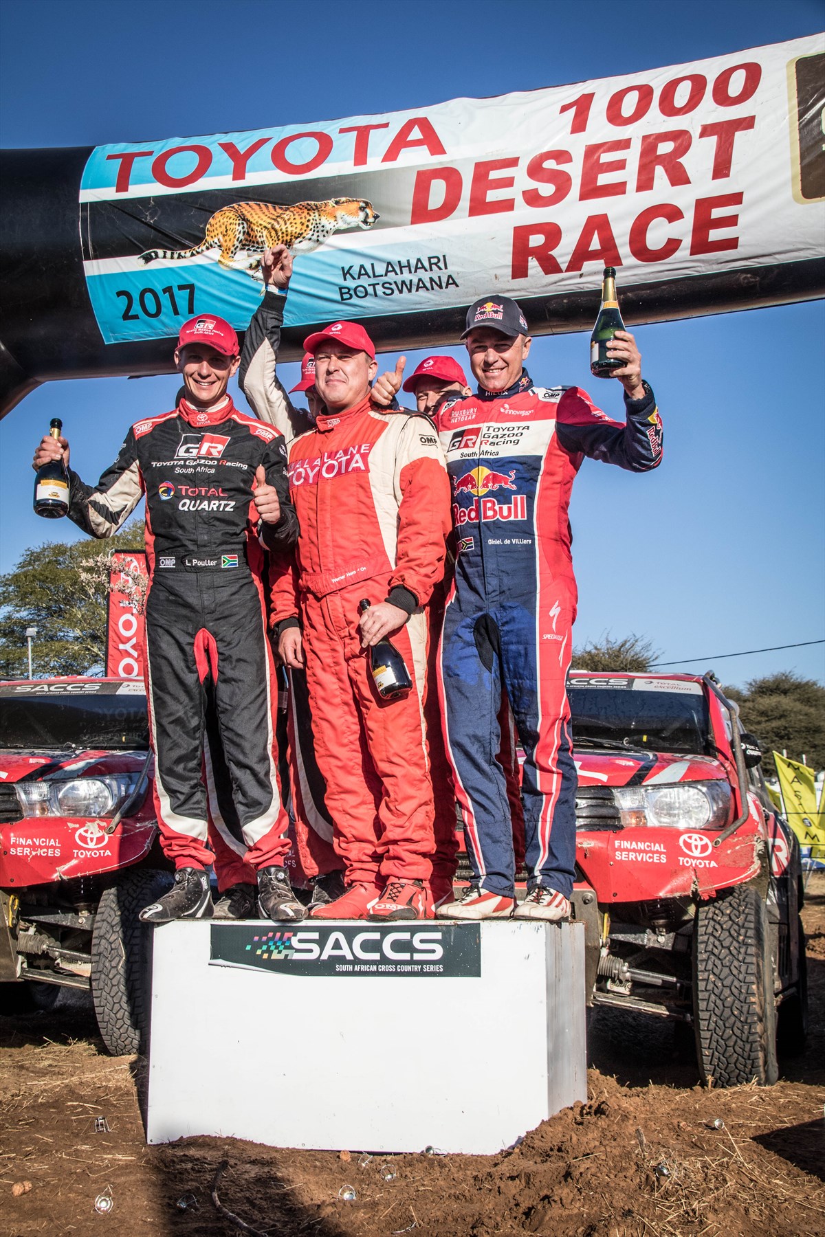 De Villiers tehát megkapta első trófeáját a Sivatagi Versenyen, a Toyota pedig megszerezte az első két helyezést. A sikersorozat azonban nem ért véget ezzel, hiszen a Malalane Toyota Hilux legénysége, Johan és Werner Horn összetettben harmadik lett, így a dobogó minden fokán Toyota-pilóták álltak.