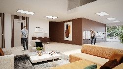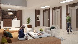 A társasház recepciójának látványterve. Szeredy Dorottya belsőépítész munkája