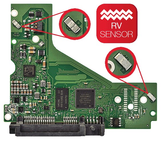 Ezenkívül a Seagate IronWolf Pro meghajtók RV (Rotational Vibration) érzékelőkkel vannak felszerelve, amelyek érzékelik a tengely körül fellépő rezgéseket, és ahol a rezgés- és frekvenciaszintek zárt rendszerben zajlanak, a meghajtófej helyzetének kompenzálására és a teljesítmény hibák minimalizálására törekszenek.