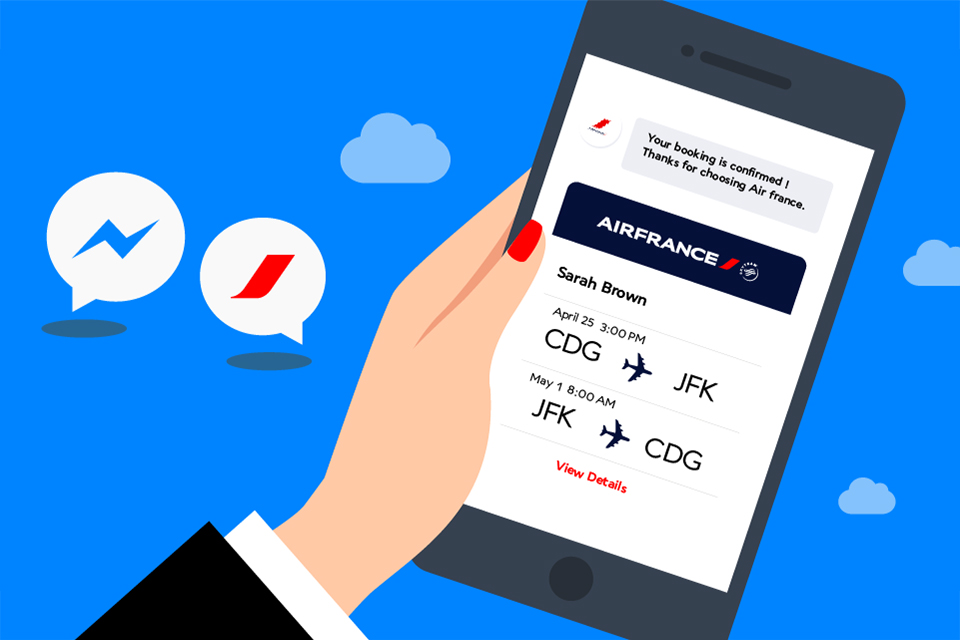 2016-ban a KLM volt az első a légitársaságok között, akinél az utasok a Facebook Messengeren keresztül is igényelhették beszállókártyáikat. Most az Air France is követi holland társát, és 2017 júniusában csatlakozott a Messengerhez. A légitársaságnak fontos, hogy ott legyenek jelen, ahol ügyfeleik is szabadidejüket töltik, így a Messenger tökéletes választás. Tapasztalatok alapján az utasok nyitottabbak ezen a platformon, és szívesebben osztják meg problémáikat.
