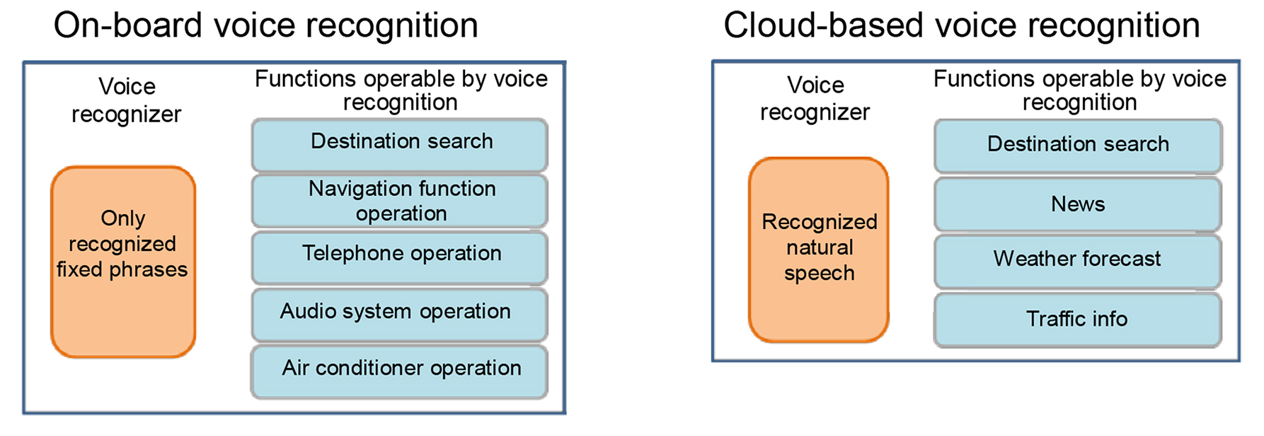 Ez a funkció két külön rendszerként, felhőalapú és fedélzeti beszédfelismeréssel működik. Bár már az eddig használt felhőalapú beszédfelismerő rendszer (az „Agent” nevű interaktív szolgáltatás) is képes volt azonosítani a természetes beszéd szavait, a szolgáltatás csak célállomások, időjárási információk, hírek keresésére és más szerver-alapú alkalmazások működtetésére korlátozódott, a fedélzeti beszédfelismerés pedig csupán meghatározott mennyiségű kifejezést tudott azonosítani. Egy cím megkereséséhez például a felhasználónak a következőket kellett mondania, kifejezetten ebben a sorrendben: „Célállomás”, „Cím”, „Tokió, Bunkyo-ku, Koraku, 1 chome, 4”. Ez azt jelentette, hogy a felhasználóknak mindig a pillanatnyi szándékuk alapján kellett kiválasztaniuk az ahhoz megfelelő rendszert. Az újonnan kifejlesztett hangvezérlés automatikusan a megfelelő beszédfelismerő rendszert aktiválja, vagyis többé nem kell választani a megfelelő funkciók között. A felhasználó egyszerűen, természetes kifejezésekkel mondhatja ki, amit szeretne, például hogy „ramen-étterem, parkolóhellyel”, vagy hogy „állítsd maximumra a légkondit”, és a rendszer így is megérti az utasításokat.