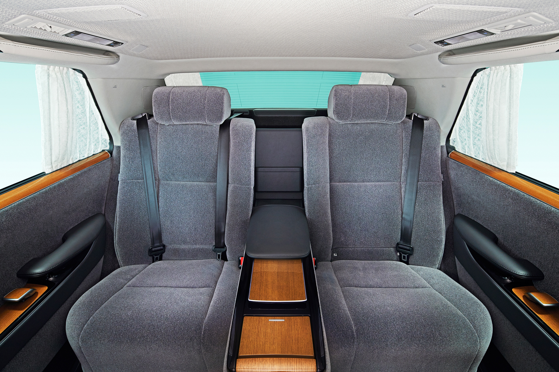 Array AHS*1 technológia mindig kiváló látási viszonyokat biztosítanak. A padlólemez enyhén lejt hátrafelé, miközben a kabin teteje kissé emelkedik; ez a megoldás nagyobb teret biztosít a hátsó üléssorban, oldalnézetből pedig a finom mozgás érzetét kelti. A C-oszlop meredekebb lejtésével a kabin hátsó részének dizájnja erőteljesebbé vált, ami az itt utazókra fontosságára irányítja a figyelmet. A kombinált hátsó lámpatestek sötétített dizájnja tovább erősíti az autó egységes stílusát. A hátsó lámpatestek háromdimenziós lencséi finoman csillognak és harmonikusan fénylenek. A magasított mennyezet és a tradicionális díszítő mintázat a legmagasabb szintű luxus idézik. Az első üléstámlák hátsó részén látható hangamintázat az ajtópaneleken is megismétlődik, még erőteljesebbnek láttatva utastér hátsó részének vízszintes kiterjedését. Az üléskárpitok a legkiválóbb minőségű anyagokból, például rugalmas és puha gyapjúból készülnek. A bőrkárpitozással rendelt modellekben csúcsminőségű, lágy tapintású bőr borítja az üléseket.A hátsó traktushoz hasonlóan a kabin első részében is megjelenik a térérzetet javító hangamintázat. A műszerfal középső részét díszítő fekete hangaminta elegáns és kifinomult hangulatot teremt. A fokozatmentesen állítható, motoros mozgatású lábtámasz és a masszázsfunkciós, állítható hátsó ülések kényelmes utazást kínálnak. A középső kartámaszba épített