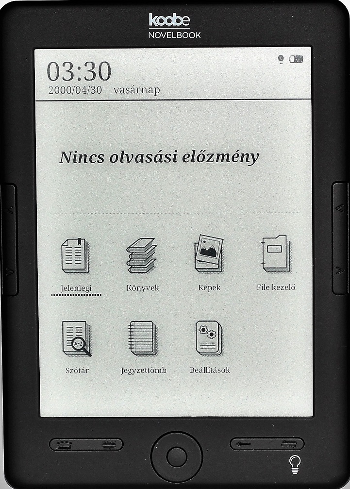 A bekapcsolást követően kb. 35 másodperc alatt áll fel a rendszer. A főoldal jó kialakítású. Legfelül, a legutoljára megnyitott könyveket érhetjük el. Ez alatt található ikonok: Jelenlegi, Könyvek, Képek, File Kezelő, Szótár, Jegyzettömb és Beállítások.