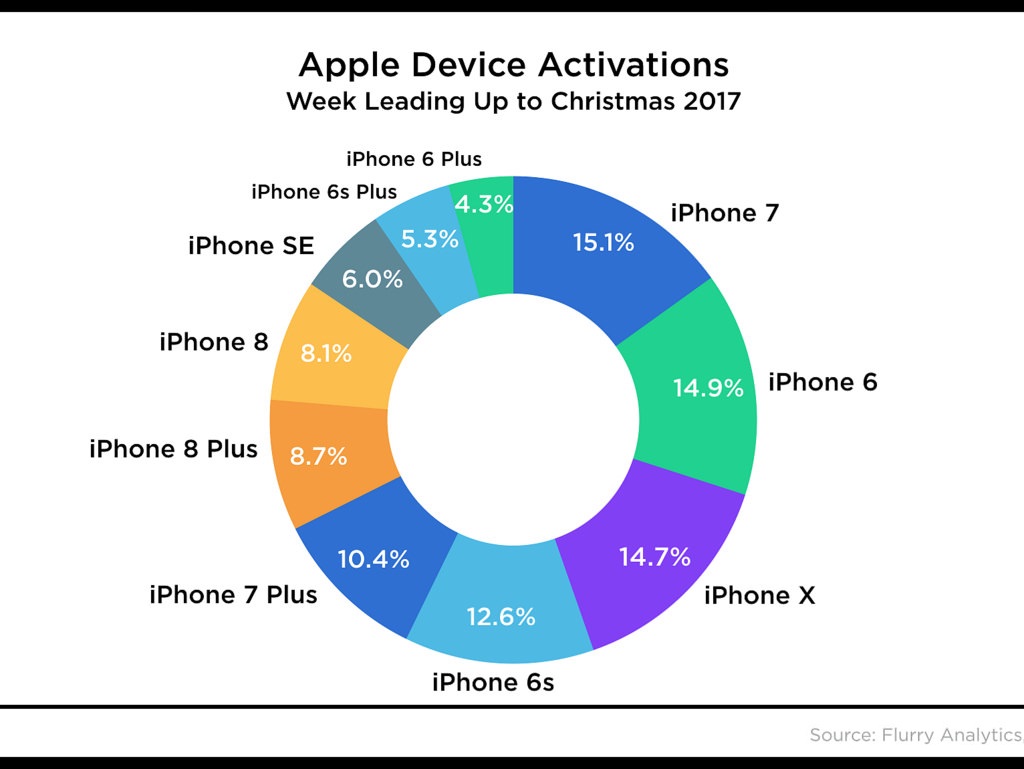 A frissen napvilágot látott hírek szerint közel sem a legújabb készülékükkel aratták le a babérokat. A legtöbbet eladott készülék ugyanis a tavaly bemutatott iPhone 7 volt. Ez megerősíti a Bloomberg által nyilvánosságra hozott információt miszerint az Apple 35 millió példányról 25 millióra csökkentette az első negyedév eladási terveit.