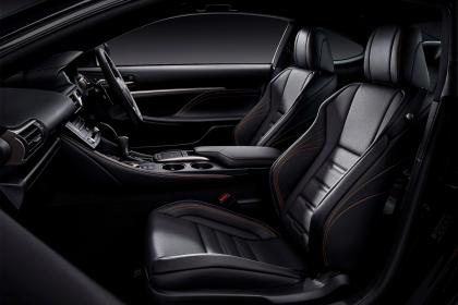 F SPORT könnyűfém keréktárcsák festése matt fekete, és a kupé grafitfekete fényezéséhez jól passzoló rozsdamentes ablakkeretek is ebben az árnyalatban pompáznak. Az F SPORT üléseket és kormánykereket sima tapintású fekete bőr borítja, amit élénk narancssárga varrás díszít. Az új fabetétek mélyfekete árnyalatát a sumi tusfesték adja. Az RC F SPORT Black Edition modellben a Lexus önmagát töltő környezetbarát hibrid hajtáslánca működik; a 2,5 literes benzinmotor és az erős elektromotor párosának összesített teljesítménye 223 DIN LE/164 kW. A rendszer lendületesen gyorsítja az autót, és készségesen reagál a gázparancsra, ugyanakkor nagyon takarékos is: az RC F SPORT Black Edition kombinált ciklusban mért legalacsonyabb üzemanyag-fogyasztása 5,0 l/100 km, CO₂-kibocsátása pedig mindössze 116 g/km.
