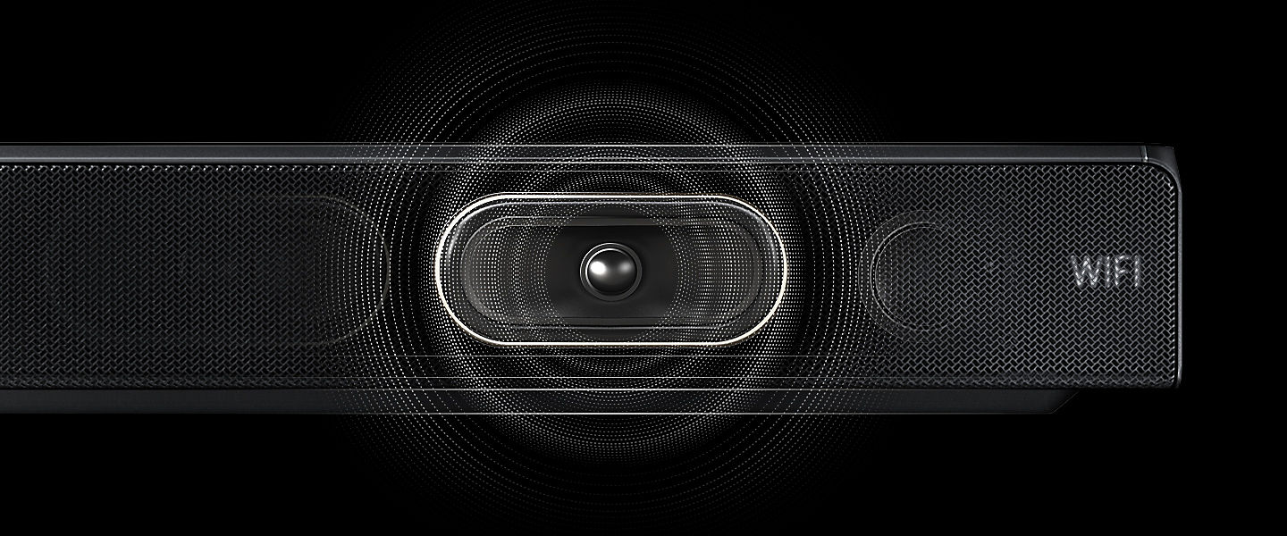 A TV hangjának erősítésével kezdtünk. Tesztalanyunk kiegészítője egy Samsung UE55MU8002 TV volt. Bár a TV készülék is prémium besorolású és az átlagos lapostévékhez képest hangban is jobb a megszólalása, ez mostani vékony készülékek, vékony készülékházai miatt fizikailag nem lehetséges nagy átmérővel rendelkező, nagy teljesítményű hangsugárzók beépítése. Ezért is kértük a hangprojektort.