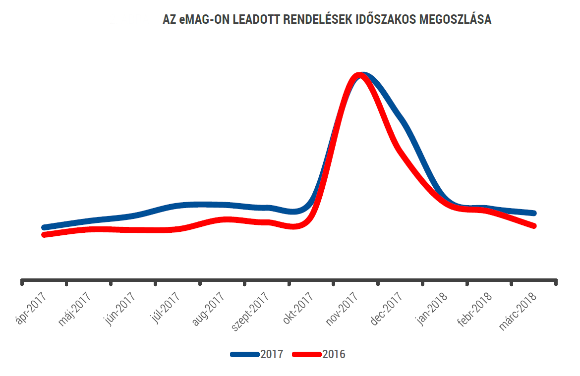 2017-ben tovább bővült a hazai online kereskedelem, több mint 360 milliárd forintos forgalmat generált az egy évvel korábbinál 7 százalékkal több (3 millió) vásárló, ami értékét tekintve 18 százalékkal nagyobb volument jelent mint 2016-ban. Az egy főre jutó átlagos vásárlások száma először tavaly lépte át a 11 alkalmat. Az online vásárlók 39 százaléka az eMAG-on is vásárolt legalább egyszer.