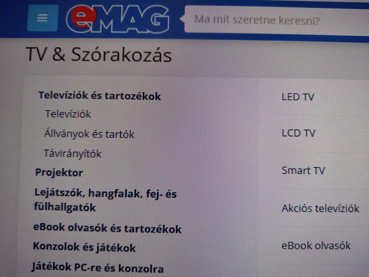 Az eMAG a magyarországi online piac egyik legnagyobb szereplője, így a legszélesebb termékkörrel rendelkezik. A webáruházban több mint 1 000 000 aktív terméket találhatnak meg a vásárlók. A legnépszerűbb termékek közé a TV-k, a nagy háztartási gépek és fehéráruk, valamit a mobiltelefonok és táblagépek tartoznak. Ezek együttesen a forgalom több mint felét adják. Egyre nagyobb az érdeklődés emellett a cipők, a női ruházati termékek, illetve a táskák és egyéb kiegészítők iránt is.