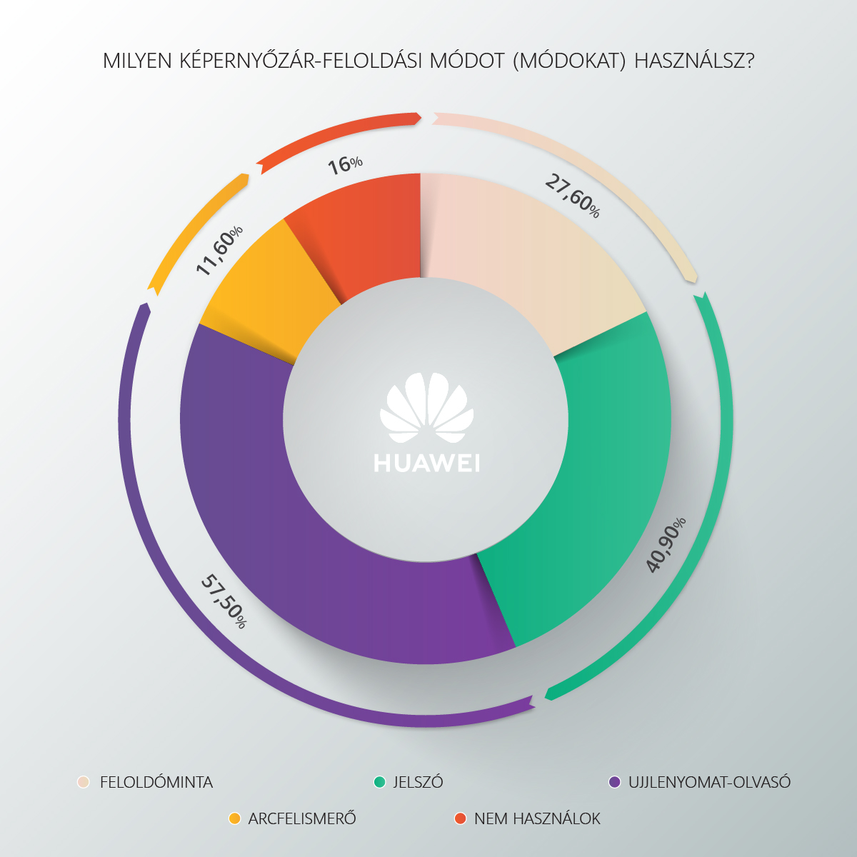 A Huawei felmérésében arra kereste a választ, hogy melyek a legnépszerűbb képernyő-feloldási módok a magyar okostelefon-felhasználók körében, és melyik technológiát tartják a legbiztonságosabbnak, valamint bíznak-e a legújabb technológiákban a mobiltulajdonosok. Az online felmérés 2018. július 26. és augusztus 2. között zajlott 7068 felhasználó bevonásával.
