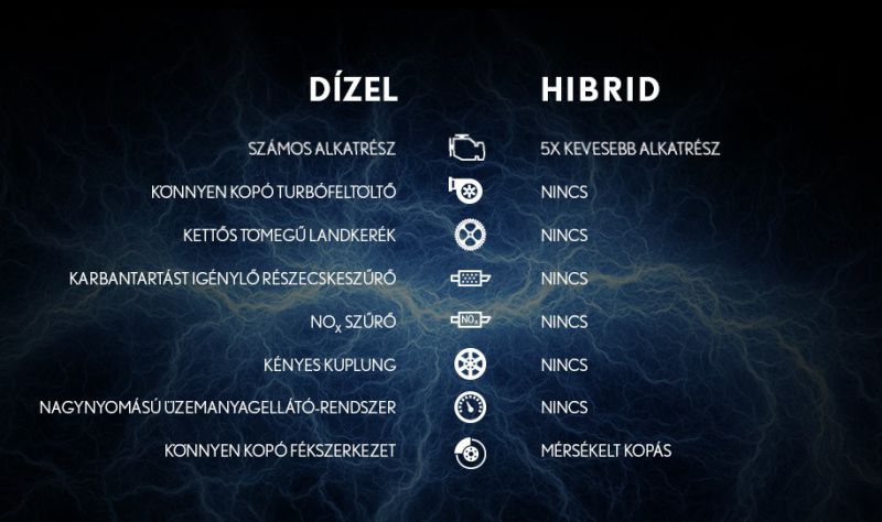 A Toyota Yaris bizonyult ráadásul a legmegbízhatóbb hibrid elektromos autónak is, míg a harmadik legmegbízhatóbb hibrid a Lexus IS, a negyedik a Toyota Auris, az ötödik a Lexus NX, a hatodik pedig a Toyota Prius lett. A felmérés is visszaigazolta tehát azt, amit a környezetbarát hibrid elektromos autókra váltó flottavásárlók már évek óta jeleznek: a piacon nincsenek megbízhatóbb autók a hibrideknél. Ennek legfőbb oka kétségkívül az, hogy egy csúcstechológiát képviselő hibrid elektromos autóban ötször kevesebb alkatrész van mint egy dízelben, és hiányoznak belőle az olyan, könnyen költséges javítási számlákat eredményező alkatrészek, mint a könnyen kopó turbófeltöltő, a kettős tömegű lendkerék, a karbantartást igénylő részecskeszűrő, az NOx szűrő, a kényes kuplung, a nagynyomású üzemanyagellátó rendszer, miközben még a fékrendszer is jóval mérsékeltebb kopásnak van kitéve mint egy dízel esetében. Könnyen belátható, hogy az alacsonyabb üzemanyagfogyasztás, valamint szerviz és karbantartási költségek révén a hibrid autók üzembentartási költsége messze elmarad a dízelekétől, ami már önmagában forintosítható előnyt jelent a hibrid meghatjás mellett döntő flottafelhasználók számára.