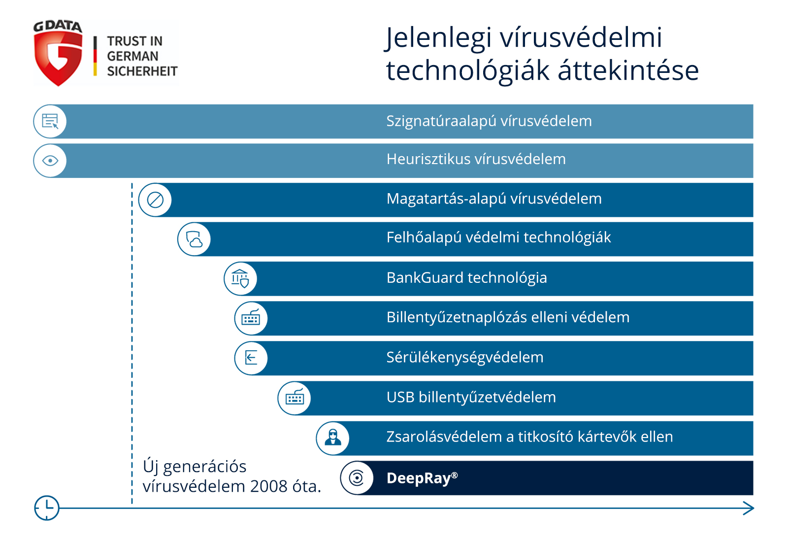 Valós időben véd a kártevők ellen a G DATA új, mesterséges intelligencián és gépi tanuláson alapuló vírusvédelmi technológiája. A DeepRay célja, hogy felismerje azokat a rosszindulatú kódokat, amelyeket a bűnözők különböző álcázási módszerekkel újracsomagoltak.