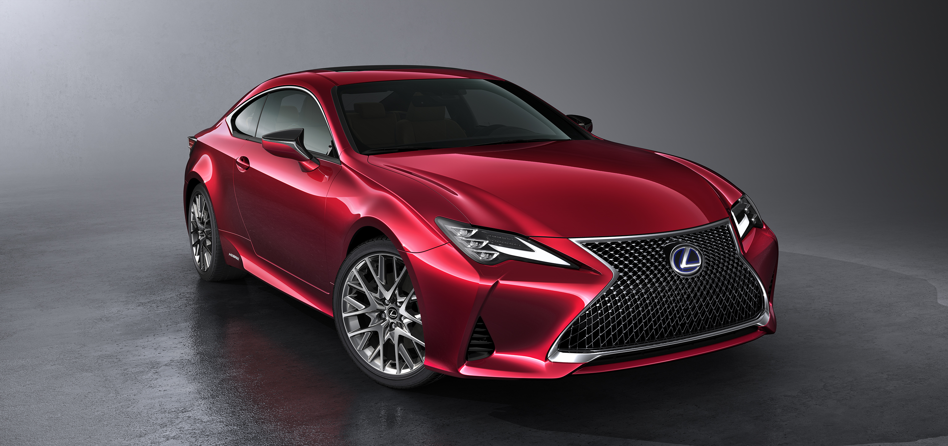 A Lexus formatervezői már a Párizsban bemutatott, és a márkakereskedésekbe januárban érkező öntöltő hibrid elektromos változatnál is tetten érhető módon arra törekedtek, hogy a karosszéria dinamikus arányainak megőrzése mellett az eddigieknél jóval elegánsabbá varázsolják az RC megjelenését. Ennek érdekében mindenekelőtt olyan karakteres stíluselemeket vezettek be, mint az első lökhárító fényszóróktól kiinduló, új sarokidomai vagy a hűtőmaszk felülről lefelé haladva fokozatosan átalakuló rácsozata, ami magával ragadó optikai feszültséget kölcsönöz a kupénak. A három darab, különösen kisméretű