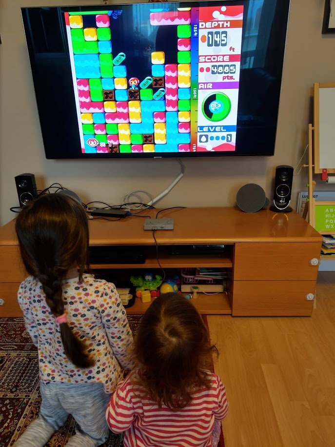 minőségben jelennek meg, azonban amikor valamelyik előre feltelepített játékot elindítjuk, akkor a kép visszaugrik 4:3-as képarányra, és a képminőség is lebutul. Ez azonban egyre kevésbé lesz zavaró, ahogy belemélyedünk például a Tekken nagy verekedéseibe, vagy a Grand Theft Auto autós üldözéseibe. A déli alvás után a 2,5 és a 4,5 éves lányaim is észrevették, hogy valami újdonság van a TV előtt, és azonnal ki is akarták próbálni. Kerestem egy gyermekbarát játékot, és a Mr. Drillert ki is próbálhatták, így egymással váltakozva kb. 1 órát élvezettel játszottak is,Összegzés