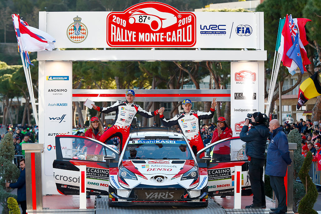 Ott Tänak fantasztikus hajrával dobogós helyhez segítette a TOYOTA GAZOO Racing World Rally csapatot a 2019 évi idénynyitó rallyn Monte-Carlóban. Jari-Matti Latvala és Kris Meeke szintén az első hat között fejezték be a versenyt, emellett Meekének még a gyorsasági szakaszt is sikerült megnyernie, így igen biztató szerepléssel mutatkozott be első versenyén a Toyota Yaris WRC kormánya mögött. Latvala szintén versenyben volt a dobogóért, majd végül alig 1,7 másodperccel maradt le a negyedik helyről. Miután korábban több percnyi hátrányt halmozott fel defektes abroncsok miatt, Meeke hatodik helyen futott be. Ám előtte már remekelt új autójával – nyolc hónap óta az első WRC futamán –, négy szakaszon is másodikként végezve Tänak mögött, majd megnyerve a finálét és begyűjtve ezért a maximális ötpontos bónuszt.
