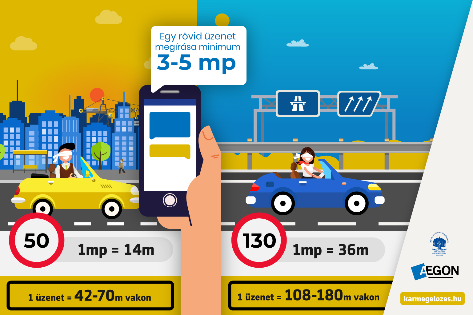 – Az okostelefon hasznos segítőtársa a modern embernek, de veszélyforrás, ha vezetés közben használjuk. Az autópályán 130 kilométeres sebességgel haladó autó 36 métert tesz meg egyetlen másodperc alatt, a városi közlekedés tempójában 14 métert – vagyis ennyit vezetünk vakon, ha a telefonra figyelünk, és ez az a távolság, ameddig nem tudunk reagálni a forgalmi helyzetekre. Az Aegon biztosító felelős piaci szereplőként nagy energiát fordít arra, hogy felhívja az autósok figyelmét a vezetés közbeni mobilhasználat veszélyeire. Mindannyiunk érdeke, hogy a sofőrök magukra és egymásra is vigyázzanak, és biztonságban odaérjenek úticéljukra – mondja az Aegon Magyarország Általános Biztosító Zrt. vezérigazgató-helyettese, Szombat Tamás.