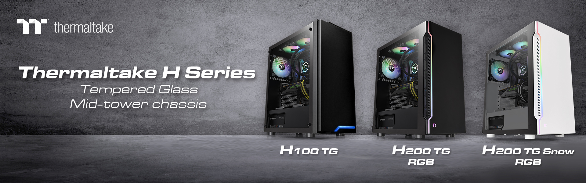 közepes méretű toronyház termékcsaládot. A H sorozat három különböző modellből áll: H100 TG, H200 TG RGB és H200 TG Snow RGB. A költségbarát H sorozat kiváló minőségű edzett üvegablakokkal készül és modern minimalista formatervezés jellemzi. A karcsú, fekete H100 TG toronyház elülső panelje merész, kék LED