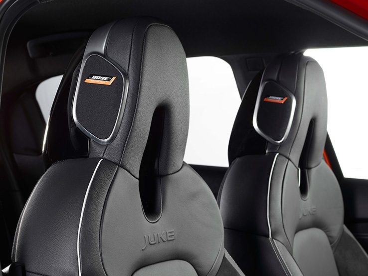 A JUKE innovatív Bose Personal Plus hangrendszerét is élvezhetik az utasok egyes felszereltségi szinteken. Nyolc nagy teljesítményű hangszórójával – köztük az első ülések fejtámláiba épített két-két BOSE® UltraNearfield hangsugárzóval – ez a rendszer 360 fokos zenei élményt és ultra tiszta hangzást kínál.