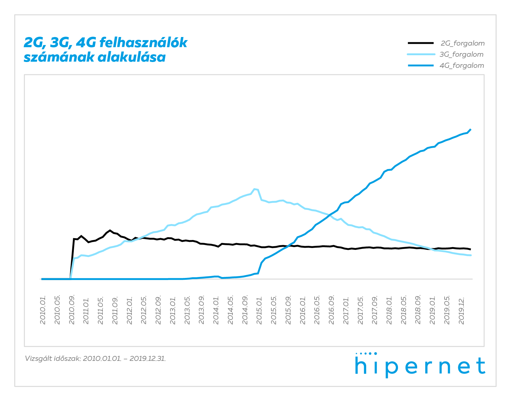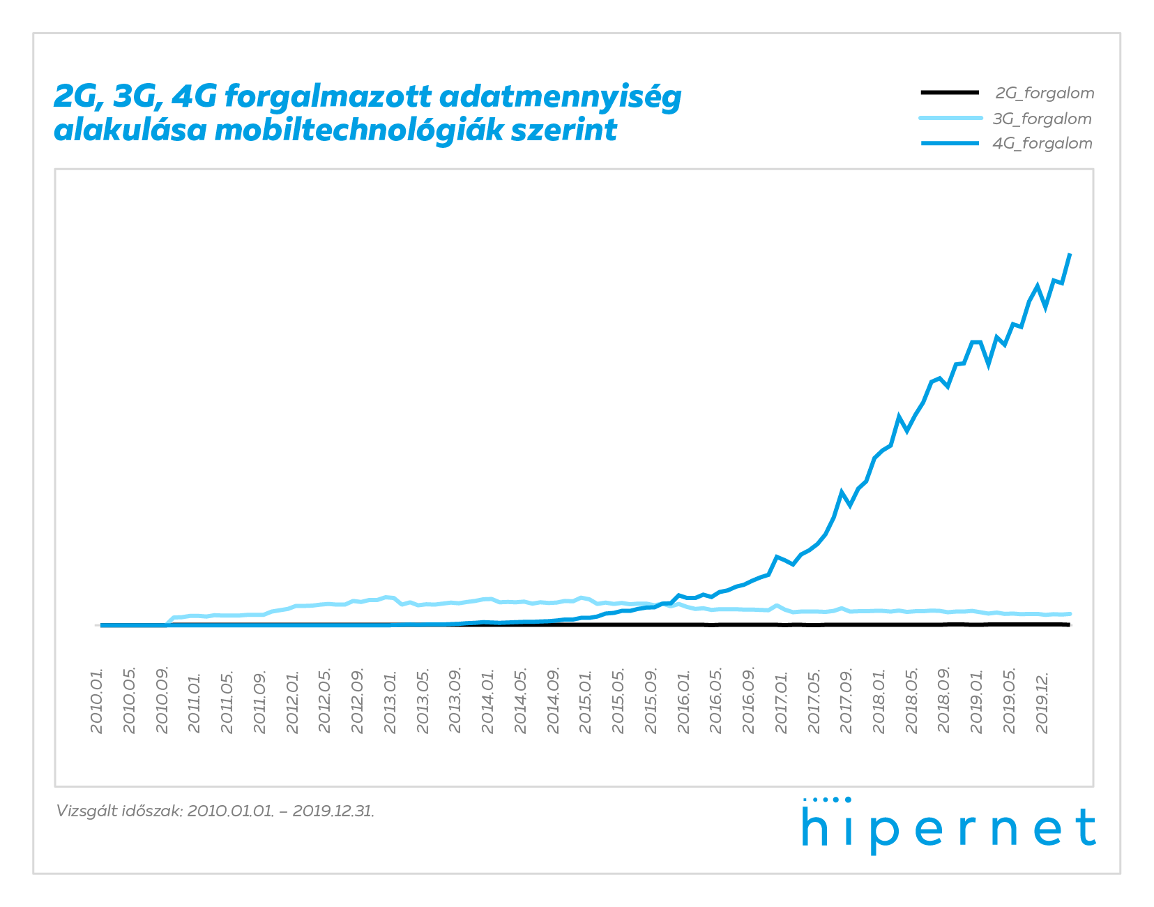 a folyamatosan növekvő lefedettség mellett egy új mobilfrekvencia-tartomány, a 800MHz hatósági megnyitásával vált igazán ütős és egyre népszerűbb szolgáltatássá: a 2012-ben kezdődött fejlesztések 2014 végétől, a technológia lakossági adaptációjával mutattak jelentős eredményt az adatforgalom növekedésében. A 4G berobbanásával a 3G hálózat adatforgalma azonnal csökkenést mutatott, és mára a 3G adatforgalom csupán töredéke a 4G-n zajló adatforgalomnak. A hálózati technológiák elérését elemezve látható, hogy míg a 4G-t használók száma folyamatosan növekszik, a 3G felhasználók száma az évtized végére a – viszonylag egyenletes trendet mutató – 2G felhasználók száma alá esett.Vannak kedvenc hónapjaink a mobilozásban is