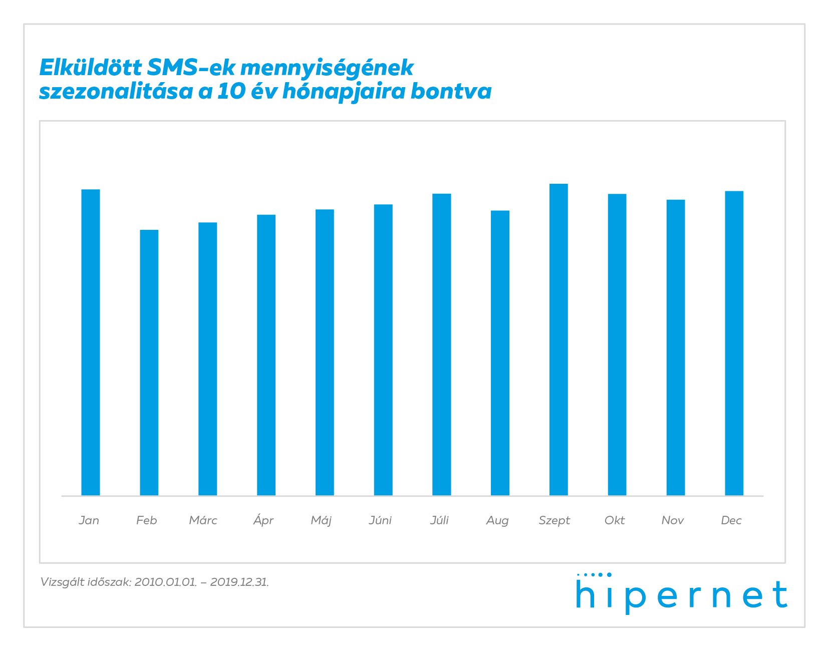 A vizsgált 10 év adatai alapján az SMS-ezés nyertese a január és a szeptember, míg februárban és a nyaralások csúcs-szezonjának számító augusztusban alábbhagy az SMS-ezési kedv.