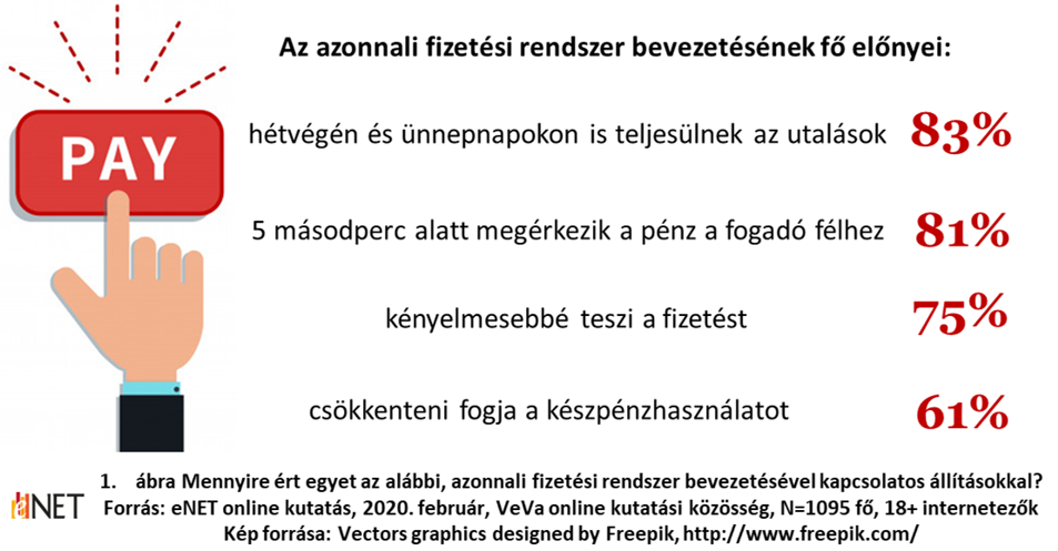 Az eNET 2020 februárjában végzett online kutatása alapján a felnőtt magyar internetezők 71 százaléka hallott róla, hogy 2020. március 2-án elindul Magyarországon az azonnali fizetési rendszer, melyet 83 százalék hasznosnak tart.