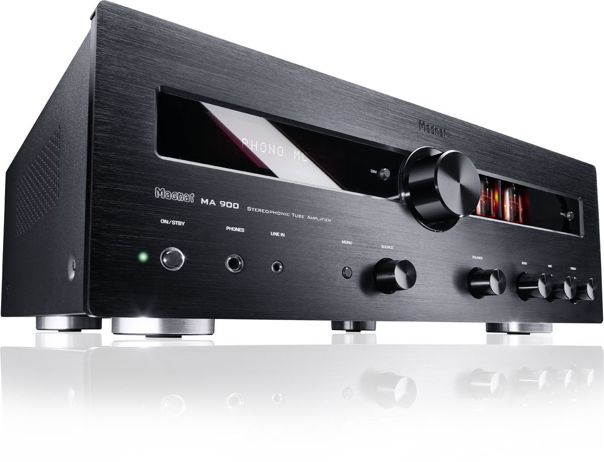 A gondosan válogatott és előre beégetett ECC 81-es csövek kifejezetten megbízhatónak ígérkeznek és rendkívül alacsony zajszintre lehet tőlük számítani. Míg a bemeneti jelek erősítésén dolgoznak, addig a végerősítő folytonos 200 W kimeneti teljesítményről gondoskodik. Az előerősítőben lévő dallamos csövek és az erős tranzisztorok együttesen alakítják az MA 900-at egy hibrid erősítővé. Ez egy elég ritka termékkategória, azonban a Magnatnál már régi hagyománya van. Mint ahogy annak is, hogy az előre beégetett két darab csövet a beszerelés előtt egymáshoz választják, hogy tökéletesen kompatibilis értékeik legyenek.