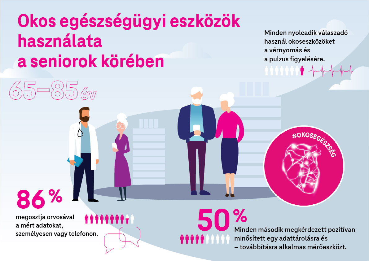 A Telekom célja, hogy ráirányítsa a figyelmet: az okoseszközök a jelenleginél sokkal hangsúlyosabb szerepet is kaphatnának a szenior generáció egészségmegőrzésében. Hogy lenne hova fejlődni, azt a kutatás eredményei is jelzik: a folyamatosan mért egészségügyi adatokat a legtöbben (86 százalék) rendszeresen, alkalmilag, vagy legalább az esetleges problémák észlelése kapcsán megosztják az orvosukkal, de nem valamilyen online megoldás, például egy okoseszköz vagy egy alkalmazás révén, inkább elmondják telefonon vagy személyesen. Ez elsősorban a megszokásnak köszönhető, nem azért van így, mert hiányzik a nyitottság – derül ki a válaszokból.