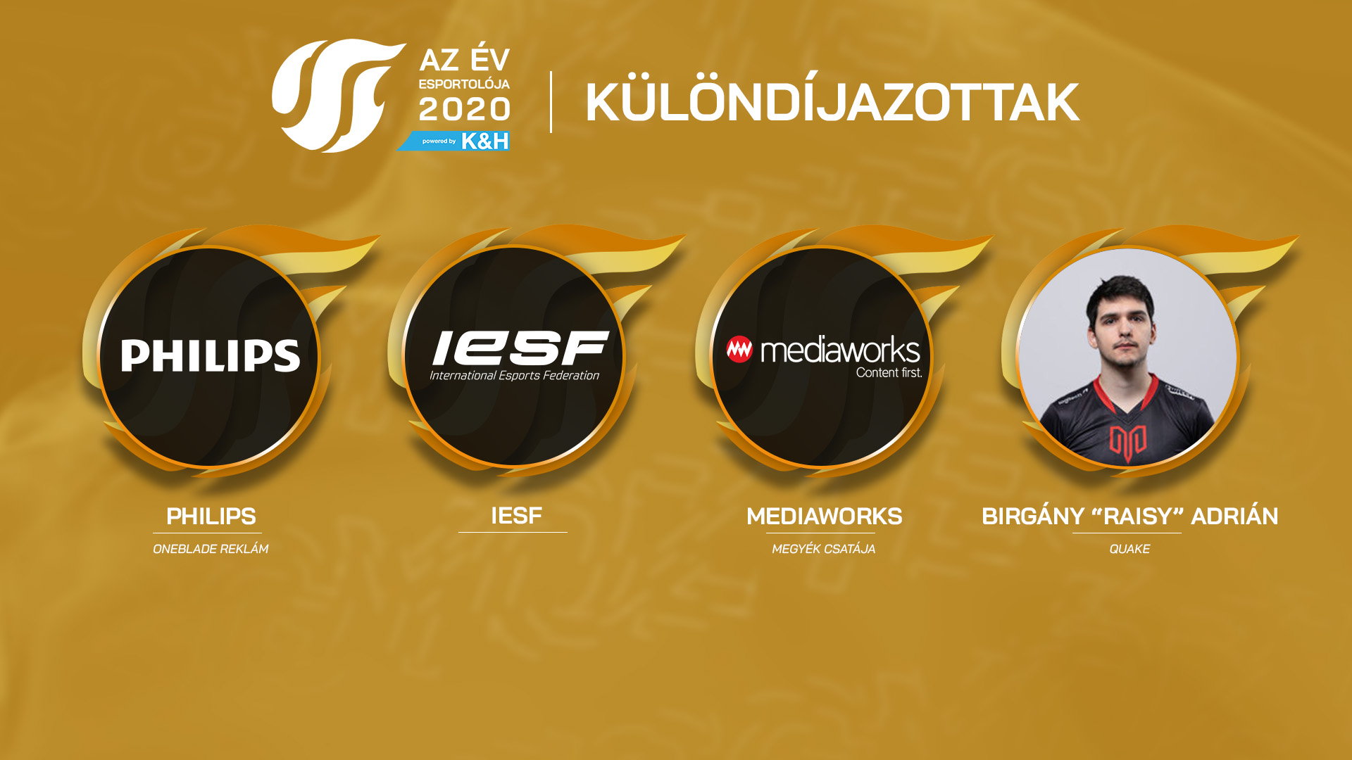 K&H Az Év Esport különdíjak: Birgány Adrián (Raisy), Mediaworks – Megyék Csatája, IeSF, Philips Magyarország Kft. - OneBlade reklám