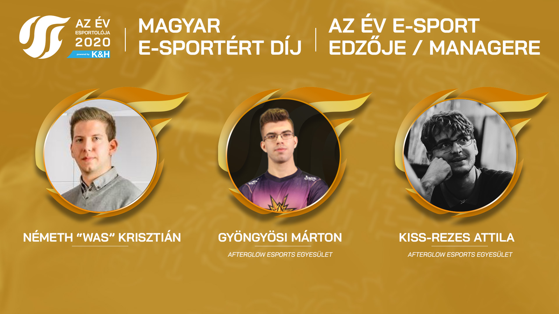 K&H Az Év Esport menedzsere & edzője kategória: Afterglow Esports Egyesület, Kiss-Rezes Attila ügyvezető & Gyöngyösi Márton (Ap4ch3) edző
