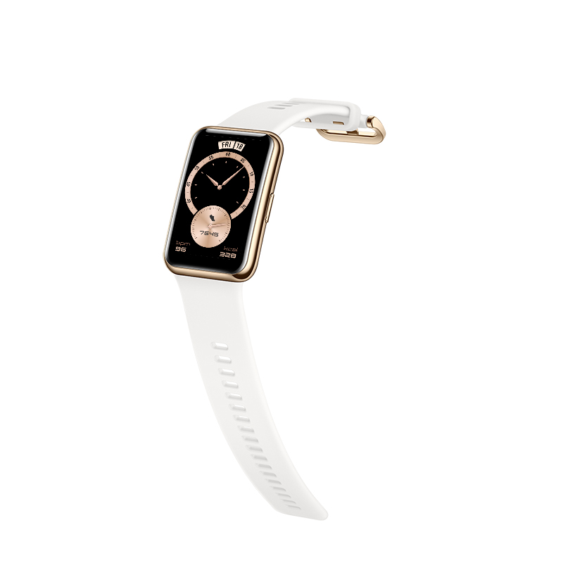 A Huawei Watch Fit Elegant letisztult, mégis elegáns megjelenésű, csúcskategóriás termék. Rozsdamentes acél készülékháza, csiszolt üvegfelületű kijelzője és a különleges, puha fluorelasztomer szíja a prémium termékek közé emelik a karkötőt. Időtálló klasszikus színeinek – Jégfehér és Éjfekete – köszönhetően bármilyen élethelyzetben, kényelmes és könnyű viselet.