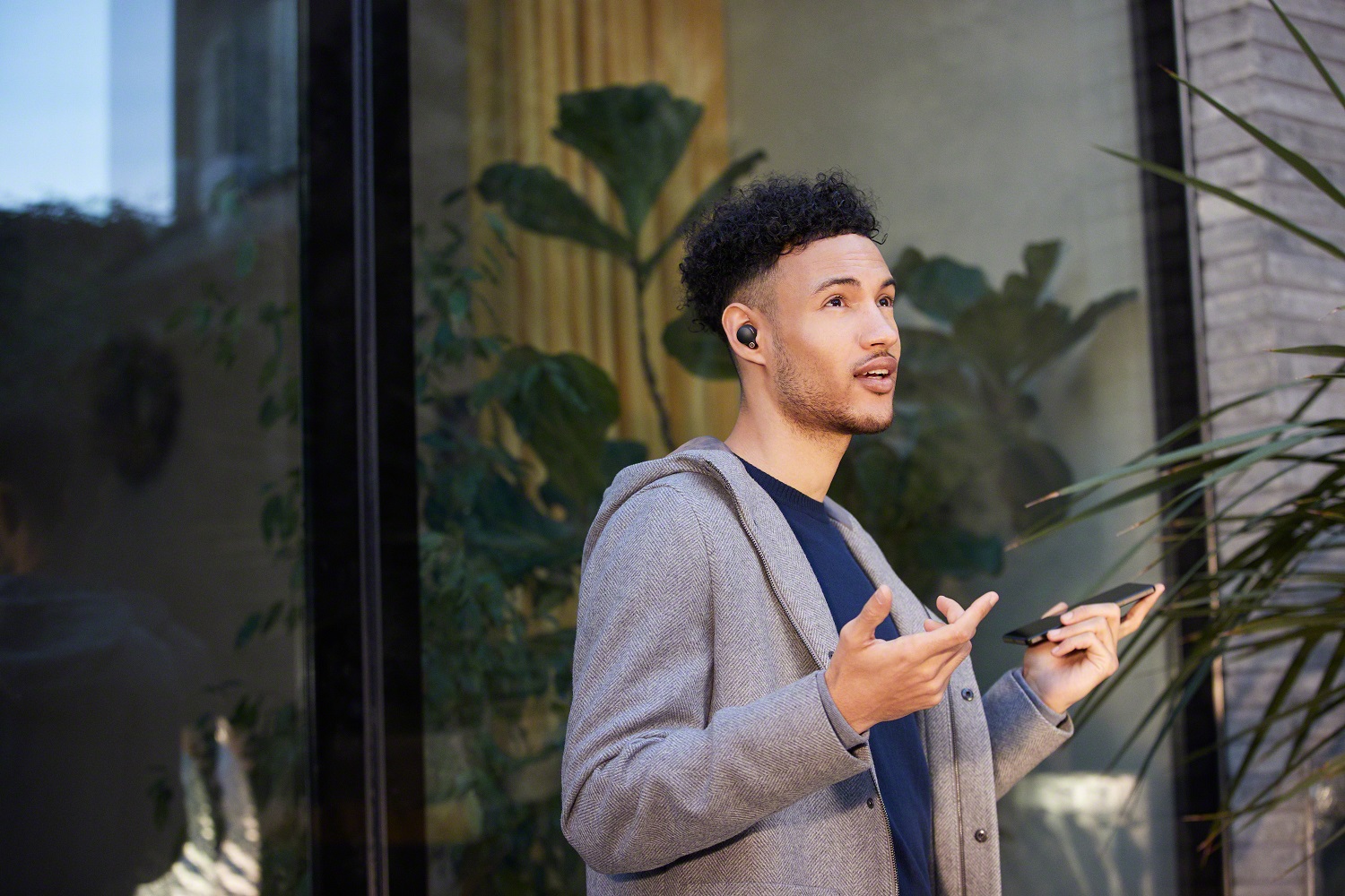 csökkentése érdekében, valamint javítja a fülkagylóhoz való tapadást a stabilabb illeszkedés érdekében.A készülék a szeles napokon is teljesen magával ragadó élményt biztosít. Az automatikus szélzajcsökkentő üzemmód érzékeli, ha szeles az idő, és automatikusan elnyomja a szélzajt.