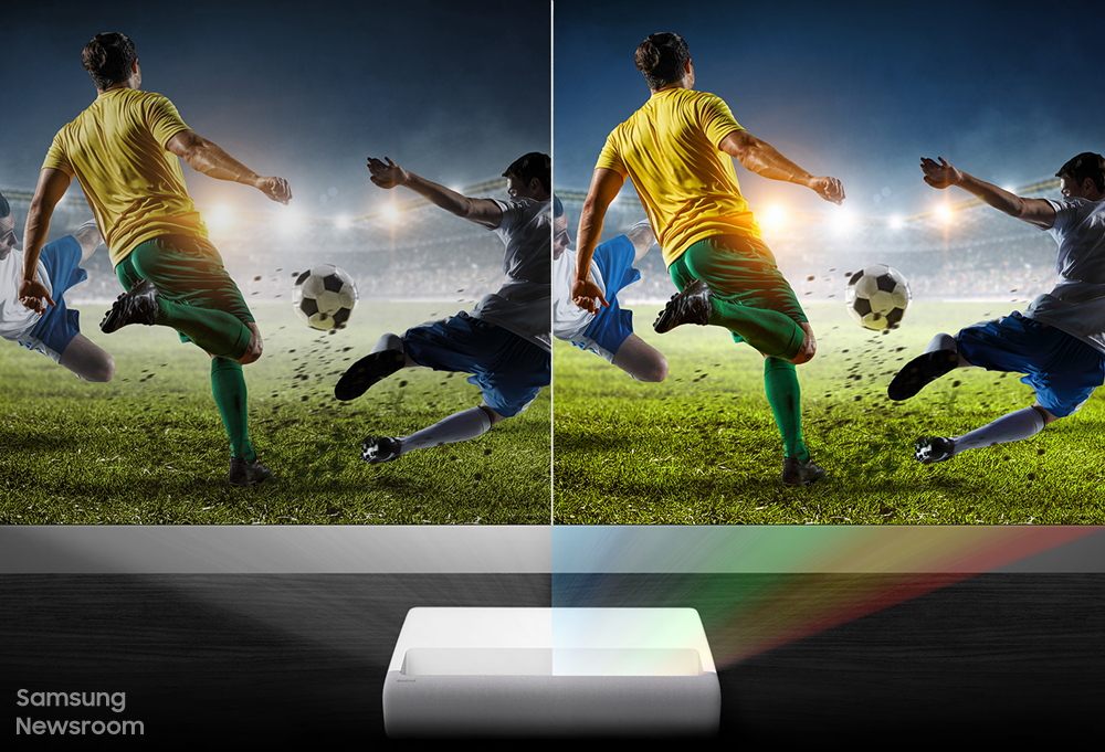 A Samsung kiemelkedő tévés technológiákat integrált a The Premiere projektorba, így a felhasználók a hatalmas képátló esetén is éles és dinamikus képeken követhetik a nap mérkőzéseit. A csúcstechnológiás hármas lézernek köszönhetően a The Premiere látványos és gazdag képi világot képes megjeleníteni. A csapatok színei élesebben jelennek meg, az akciódús helyzetekben is pontosan látható marad a labda útja és az ünneplés eufóriája is átélhető lesz. Legyen szó egy lebilincselő 4K sport-dokumentumfilmről, vagy a döntőről, a The Premiere ultranagy képén a fontos részletek is láthatóak lesznek.Lenyűgöző képminőség, napszaktól függetlenül