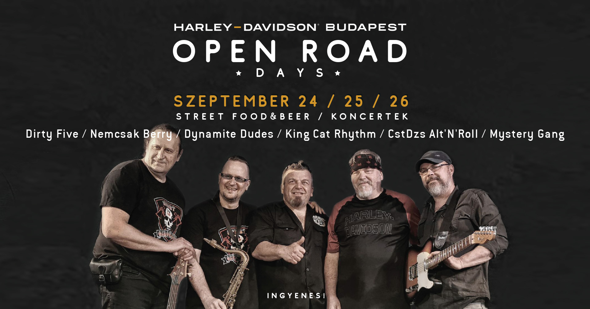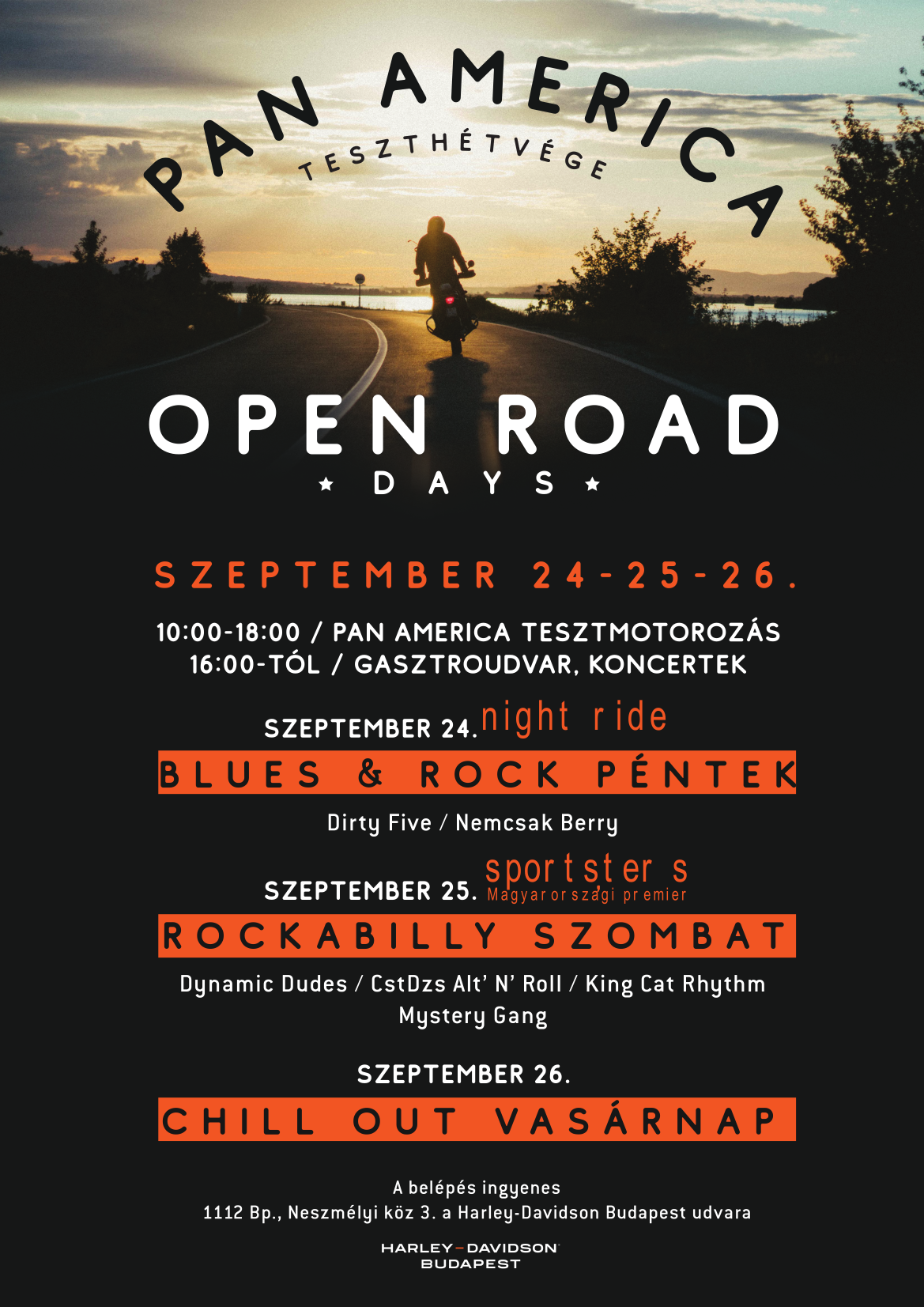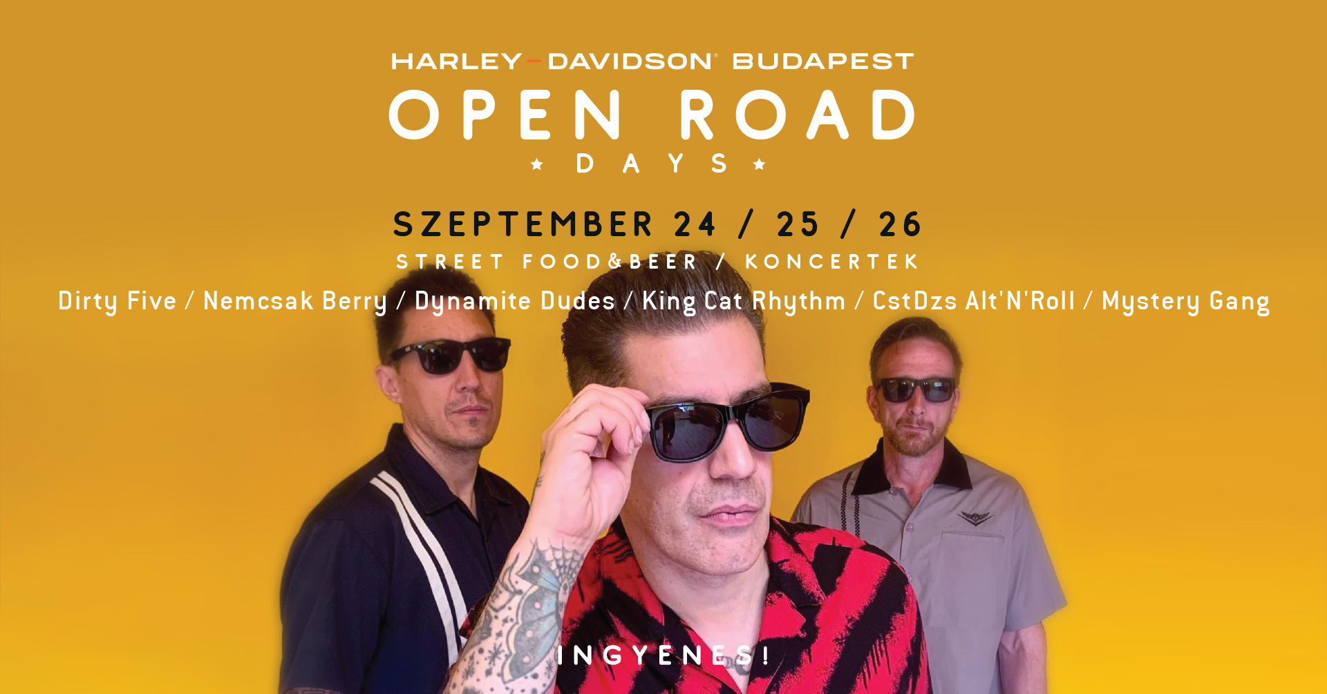 Sportster S magyarországi premier, rock és rockabilly koncertek a szeptember 24. és 26. között megrendezésre kerülő Harley-Davidson Open Road Days-en. Dögös motorok, cseh sörök, gasztroudvar, fellép a Mystery Gang, Nemcsak Berry és sokan mások. A rendezvényre a belépés ingyenes, a bejáratnál mindössze egy mosolyt kérnek.
