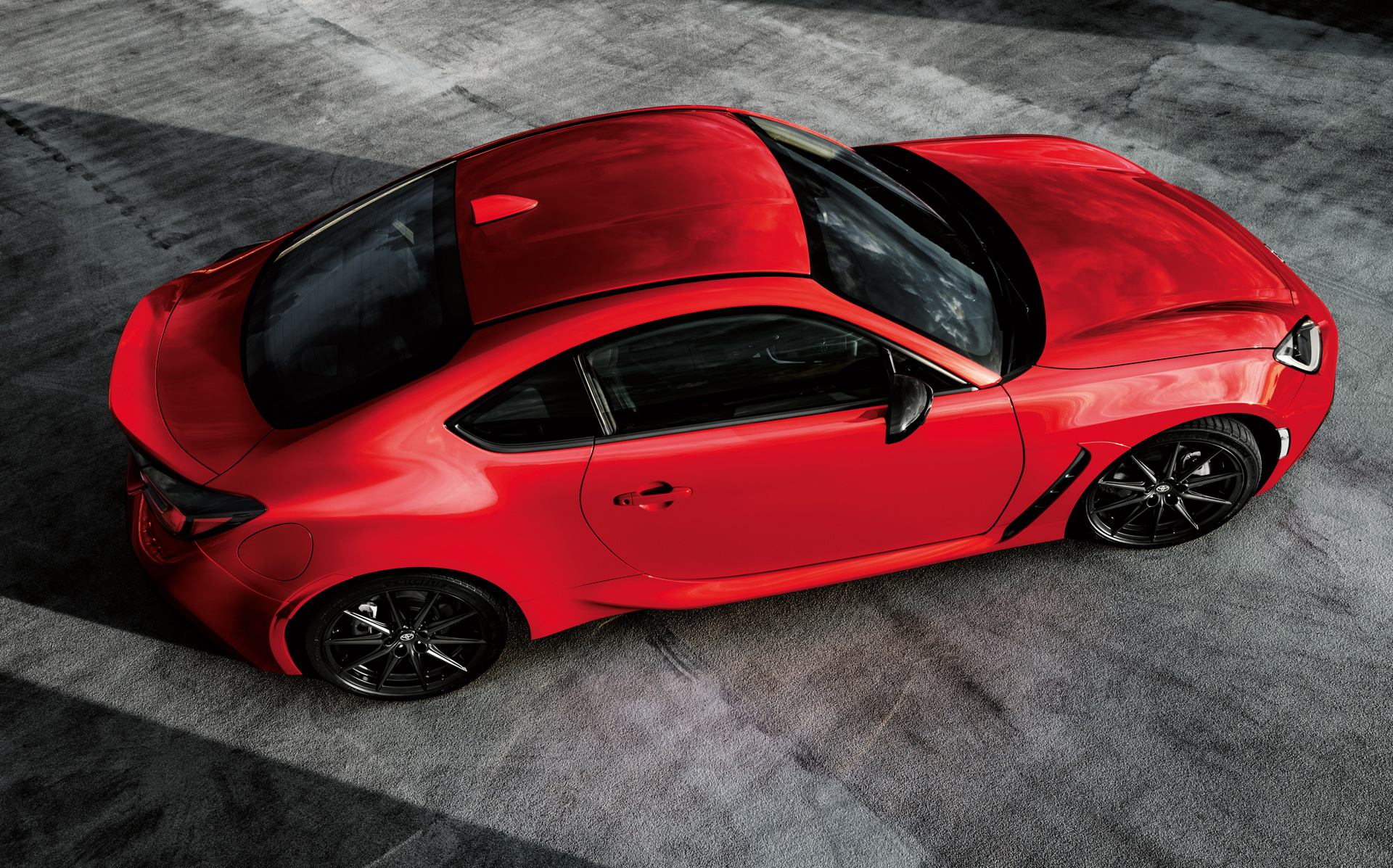 fényszórók belső elrendezése a Suprához hasonlóan L alakot ölt, míg az új hűtőrács a GR modellek exkluzív ismertetőjegyeként G-alakot formázó mintázatot kapott. Az első lökhárító díszbetéte új textúrát kapott, amely amellett, hogy fokozza a sportosságot, funkcionális is, és segít csökkenteni a légellenállást. Oldalnézetből a méretes első légterelő, és a küszöbelemek hangsúlyos domborításai lehetnek feltűnők, míg a vízszintesen futó alváz, amely a szárnyakon és az ajtó vonalán is áthalad, erőteljes kiállást biztosít az autó teljes hosszában. A hátsó szárny ugyancsak erőteljes megjelenést kölcsönöz, míg az utaskabin hátsó részének kúpos formája az autó szélességét és az alacsony súlypontot hangsúlyozza. A hátsó fényszórók grafikája háromdimenziós, és ügyesen játszanak össze a GR86 hátsó traktusának teljes szélességében végighúzódó díszléccel. A Toyota Gazoo Racing motorsportban szerzett szakértelmének köszönhetően kerültek az autóra az első légterelők és a teljesen funkcionális légbeömlőnyílások is. Ezek az első kerékjárat ívek mögött találhatók, hogy szabályozzák a légáramlást és csökkentsék a gumiabroncsok körüli turbulenciát. Az új, fekete fényezésű külső tükrök az aerodinamikai hatékonyság jegyében ívelt kialakítást kaptak, míg a hátsó kerékjárati íveken feltűnő bordázat és a hátsó lökhárító alsó részén található légterelő elemek segítik a légáramlás szabályozását az autó karosszériája felett és attól eltávolodva, ezzel fokozva a stabilitást. A magasabb felszereltségű modellek esetén egy kacsafarokra emlékeztető légterelő is kerül a csomagtérajtó alsó élére. Modellváltozattól függően a GR86 vagy csiszolt felületű, 17” tízküllős könnyűfém keréktárcsákat kap Michelin Primary HP abroncsokkal, vagy 18” fekete felnikkel érkezik, amelyeken Michelin Pilot Sport 4 gumik feszülnek.Belső – utas- és csomagtér